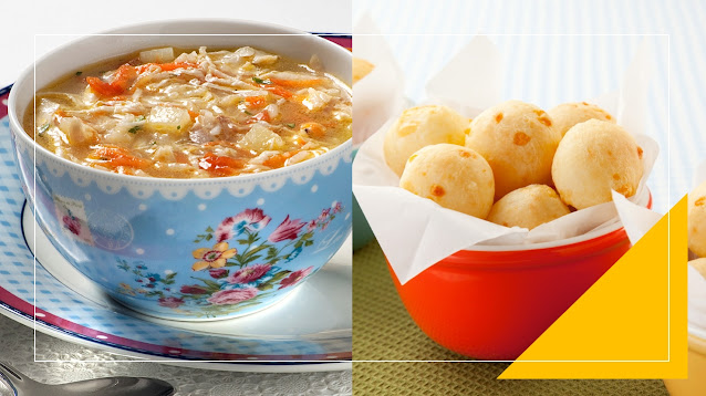 A canja de frango é uma alternativa saborosa e nutritiva, e o prato rende dez porções, indicado para um jantar em família. Já o pão de queijo, muito popular em todos os cantos do país, é uma ótima opção para café da manhã ou lanche da tarde. Confira as receitas e sinta-se abraçado: