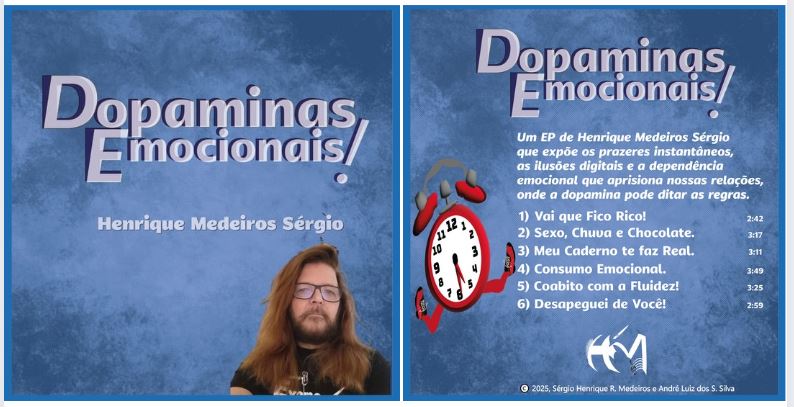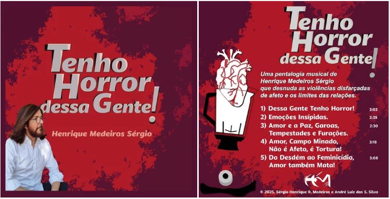 Henrique Medeiros Sérgio não apenas escreve ou canta. Ele denuncia, provoca e transforma. Sua obra cruza a literatura, a música e a pesquisa social para dar voz a quem sofre com relações abusivas, exclusões e preconceitos. Estes três EPs com 17 músicas, não são apenas coleções de canções: são gritos necessários, trilhas sonoras de resistência e espelhos das nossas contradições coletivas. 17 canções como mosaico: cada obra é uma peça que se completa na outra, resultando em um mapa das relações humanas sociais e emocionais.